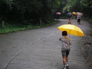 ![]() 雨は降ったりやんだり ほとんど車が通らず 歩きやすい道でした |
