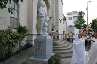 桜町教会信徒のドミニコ安部重竹氏に制作を依頼、2007年(献堂50周年)8月15日に除幕・祝別。建立にかかる費用500万円を特別募金を実施。(2005年3月13日臨時信徒総会で承認)